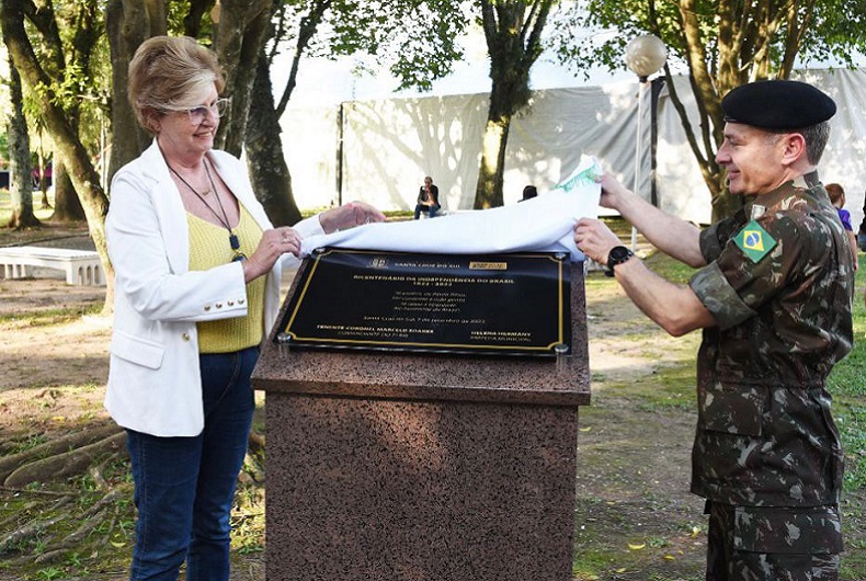 A prefeita Helena Hermany e o comandante do 7o Batalhão de Infantaria Blindado (BIB), tenente-coronel Marcelo Soares, descerraram uma placa em celebração à data. Com trecho do Hino da Independência e assinada pela prefeita e o comandante, a placa foi instalada em um monumento na Praça Getúlio Vargas.