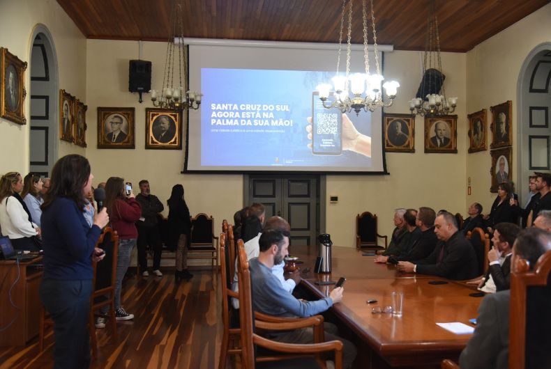 Santa Cruz do Sul está na palma da mão. Explorar os atrativos da cidade e do interior, descobrir belezas naturais, opções de gastronomia e acomodações de qualidade, além de obter informações sobre os mais de 200 eventos que a cidade oferece, agora ficou muito mais fácil. Isso porque a prefeitura lançou nesta quinta-feira, 31, um app/site inovador para impulsionar o setor turístico do município. O ato ocorreu no Salão Nobre do Palacinho com a presença do prefeito Sérgio Moraes, de secretários municipais, vereadores, Sicredi e representantes do trade turístico.