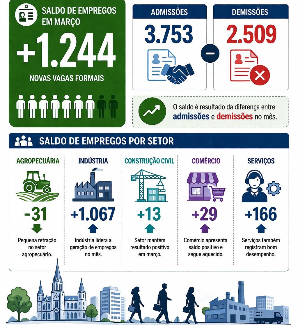 Santa Cruz lidera geração de empregos formais no RS em 2026, mostra Caged