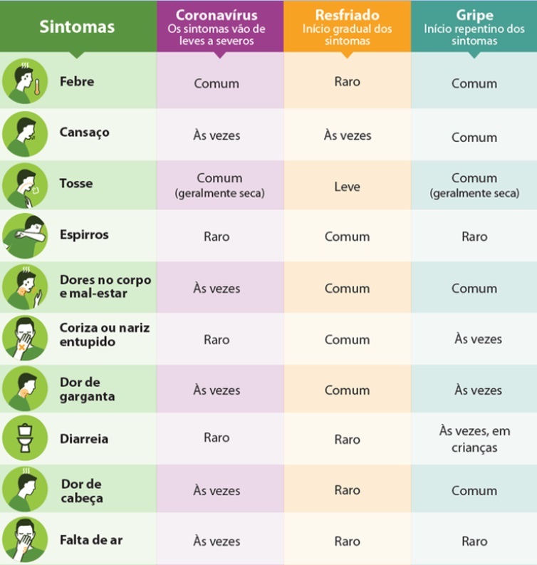 A Secretaria Municipal de Saúde reforça que as pessoas fiquem atentas aos sintomas do novo coronavírus para que não confundam com outros problemas respiratórios, entre eles resfriados e rinites, que são comuns neste período.