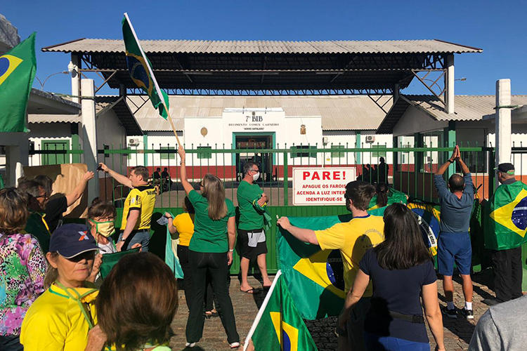 Uma manifestação a favor do presidente Jair Bolsonaro foi realizada neste domingo, 19, em Santa Cruz do Sul. Por volta das 16 horas, o grupo se reuniu em frente ao 7º Batalhão de Infantaria Blindado (7º BIB) e seguiu em carreata até a frente do Parque da Oktoberfest. Depois, os manifestantes foram até o pórtico do quartel, onde cantaram o hino nacional.