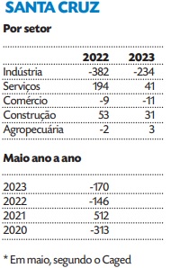Enquanto a indústria fumageira mais fecha do que abre vagas, o setor dos serviços foi o que mais gerou oportunidades: 41. O saldo é positivo, mas bem abaixo dos 194 registrados no ano passado. Dessa forma, Santa Cruz anota o pior resultado na geração de empregos desde 2020 (313), quando foi modificado o sistema de apuração do Caged.