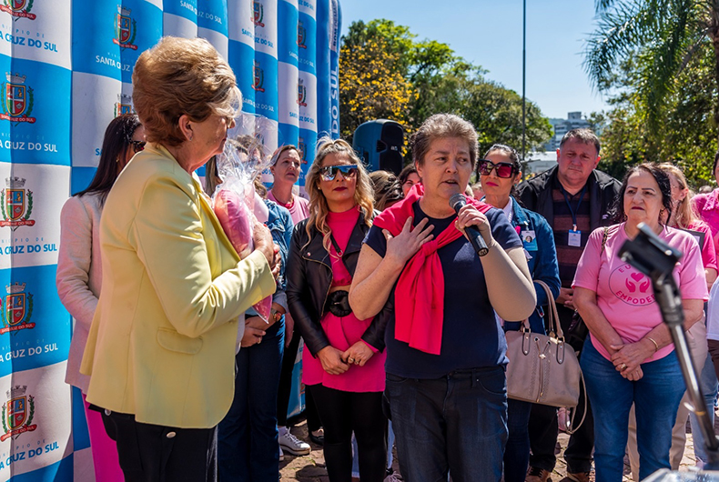O ato de abertura contou também com a presença da coordenadora municipal da Mulher, Solange Basso, da presidente do Conselho Municipal dos Direitos da Mulher, Janaína Freitas, da delegada Raquel Schneider e de representantes da Unisc, Conselho Municipal do Idoso, Centro de Referência do Idoso, 13ª Coordenadoria Regional de Saúde, secretarias municipais de Saúde e de Agricultura, Apopesc, Apeccan, Apott, projeto Empodera, projeto Abrace outra mulher, Stock Med, Unimed, Hospital Ana Nery, Emater, Unisc e Óticas Carol.