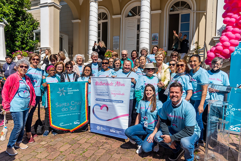 Já o diretor da unidade Sesc Santa Cruz, Fabrício Gianezini, afirmou que a união do Outubro Rosa com o Mês da Longevidade tem tudo para dar certo e destacou a participação do grupo da Maturidade Ativa que em 2024 completará 20 anos de existência. Ele convidou o público a prestigiar as atrações que ocorrerão no decorrer de outubro e fez ainda a entrega de uma camiseta do mês para a prefeita Helena Hermany. Ela ganhou também um mimo do projeto Abrace outra mulher.
