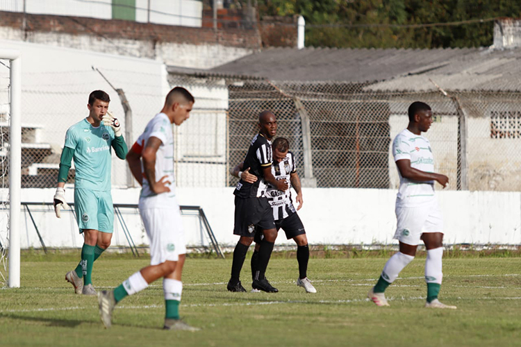 Nena e Fogaça comemoram o gol do camisa 9, que abriu o caminho da vitória carijó | Foto: Vinicius Molz Schubert/FC Santa Cruz/Divulgação/GS