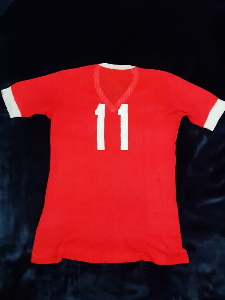 Camisa do ex-jogador Lula, presenteada ao padrinho Carlos, no Estádio do Pacaembu, em 1974