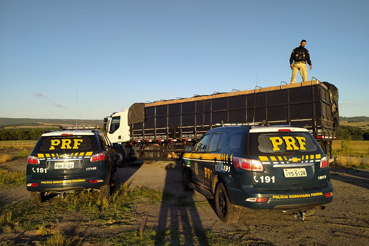 Durante ações de combate ao crime, policiais rodoviários federais abordaram um caminhão com placas de Esteio que transitava pela BR-153. Ao verificarem o compartimento de carga, os policiais encontraram cerca de 210 mil maços de cigarros paraguaios contrabandeados.