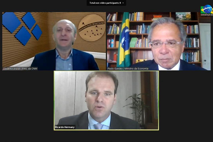 O professor santa-cruzense Ricardo Hermany foi um dos palestrantes do seminário online A visão municipalista da reforma tributária, promovido pela Confederação Nacional dos Municípios (CNM) na manhã dessa segunda-feira, 14. O evento contou com a participação de diversas autoridades, como o ministro da Economia, Paulo Guedes, e o deputado federal Rodrigo Maia (DEM), atual presidente da Câmara dos Deputados.