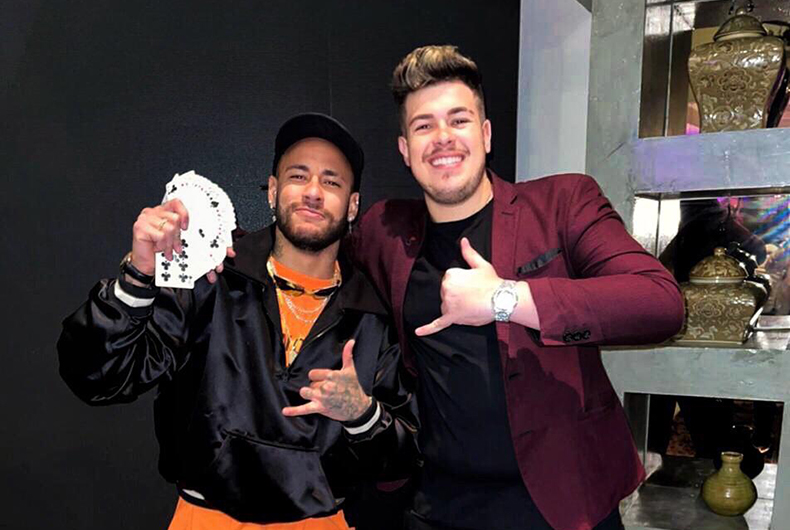 Foi atuando em uma balada da cidade que Miguel, “o Mágico do Século”, como se apresenta nas redes sociais, teve a chance de conhecer Neymar. Por meio de um amigo do jogador que viu uma de suas apresentações, foi convidado para um almoço. “Fiquei assustado assim que entrei na casa e vi ele a poucos metros na minha frente. Confesso que bateu um nervosismo, mas foi até eu me acostumar com a ideia. Depois de horas conversando com ele, trocando muita ideia, vi que é um cara simples.”