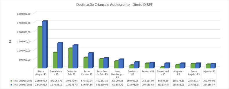 O contribuinte pode doar até 6% do que deve pagar como Imposto de Renda. Sendo Porto Alegre o município com maior volume de doação, superando R$ 2,5 milhões para crianças. Caxias do Sul e Santa Maria também superam a casa do milhão.