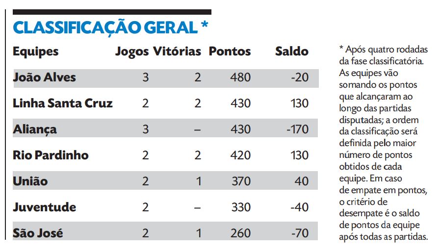 Nas de conhecimentos gerais, atuaram Mylena e Nina por João Alves, e Sirlei e Guido por Linha Santa Cruz. Por fim, nos chutes a gol, Felipe Gehrke e Felipe Jung representaram João Alves, e Guido e Júnior, o Linha Santa Cruz. No confronto, melhor para Linha Santa Cruz, que venceu por 190 a 120.