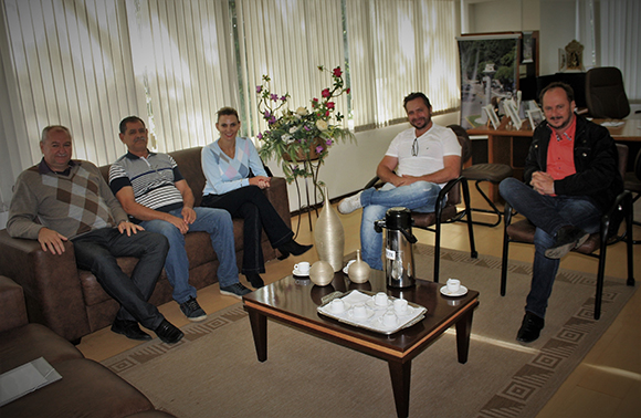 O prefeito Maninho Trevisan e o vice-prefeito Armando Mayerhofer estiveram reunidos com os empresários Elui Vicente, Ana Rubria Ceolin De Bortoli e Paulo Sergio Ceolin. O grupo tratou sobre a expansão da unidade de recebimento de grãos SC Cereais, situada no Distrito Industrial de Sobradinho. Na ocasião, os proprietários da Empresa de Grãos solicitaram ao município a doação de uma área de terra para ampliação da unidade.
