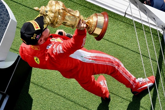 Sebastian Vettel não se importou com pressão da torcida e fez a festa na casa do adversário. O piloto da Ferrari ganhou o Grande Prêmio da Inglaterra, neste domingo, em Silverstone, e abriu vantagem na liderança na classificação geral. Favorito, o britânico Lewis Hamilton havia partido na pole position, mas se envolveu em acidente na primeira volta e precisou fazer prova de recuperação para cruzar a linha de chegada em segundo. Kimi Raikkonen, também da Ferrari, foi o terceiro.