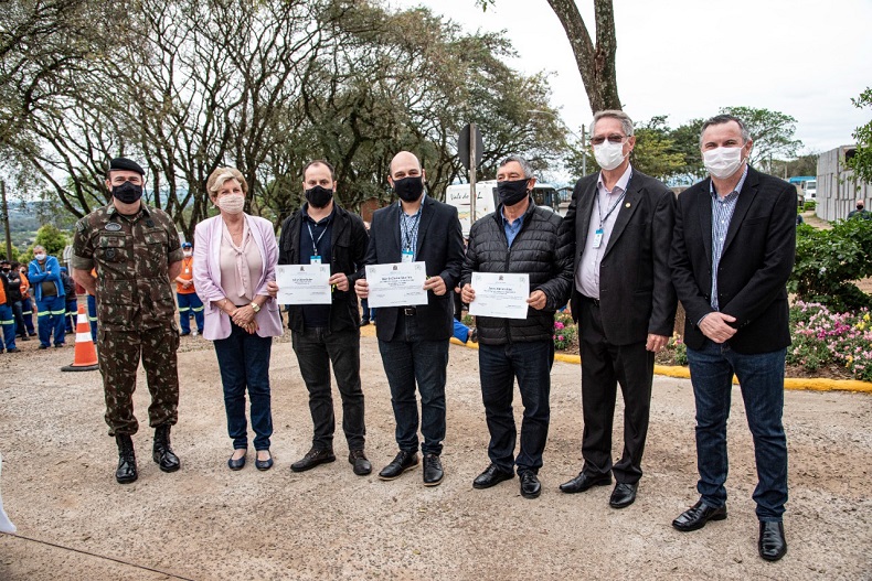 O ato, no pátio da Oficina Pesada, reuniu mais de 100 servidores e contou com a presença da prefeita Helena Hermany, do vice-prefeito Elstor Desbessell, do comandante do 7º Batalhão de Infantaria Blindado (7º BIB), coronel Fernando Barcellos da Rosa, de secretários municipais, vereadores, subprefeitos e convidados. A banda do 7º BIB também esteve presente.