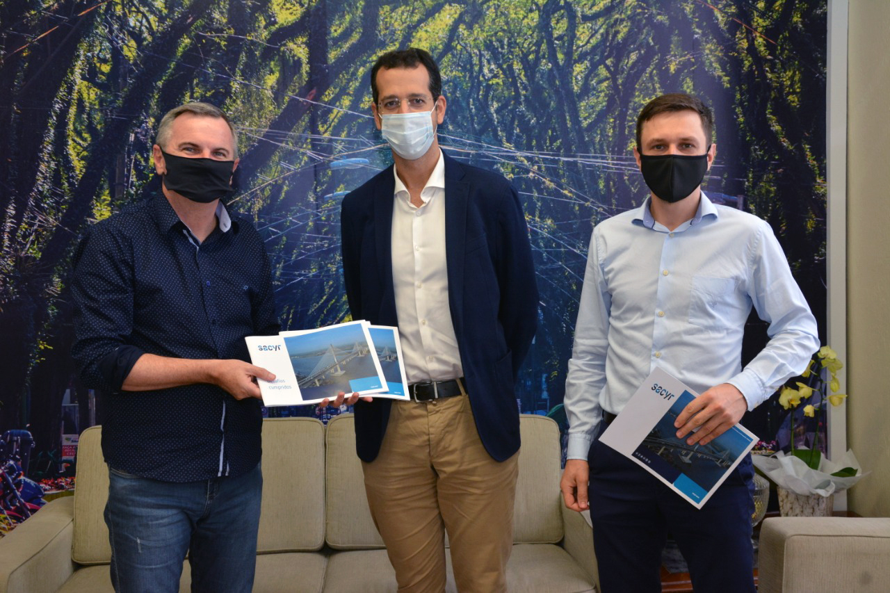 Representantes da Sacyr estiveram em Santa Cruz do Sul na manhã desta sexta-feira, 12. Eles fizeram uma visita de cortesia ao vice-prefeito, Elstor Desbessell. O grupo espanhol venceu o leilão para a concessão da RSC-287 e vai administrar a rodovia ao longo dos próximos 30 anos.