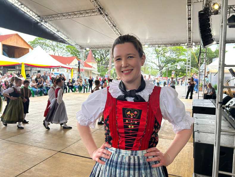 Regina soma 21 anos na entidade, tendo sido incentivada a participar desde pequena por seus familiares. “Meu pai e minha mãe me inscreveram no grupo das crianças, aí eu me apaixonei e continuei dançando”, contou. Na Oktoberfest, dança desde os 8 anos e não abre mão de participar. “As crianças adoram e esperam o ano todo por isso. É muito gratificante.”