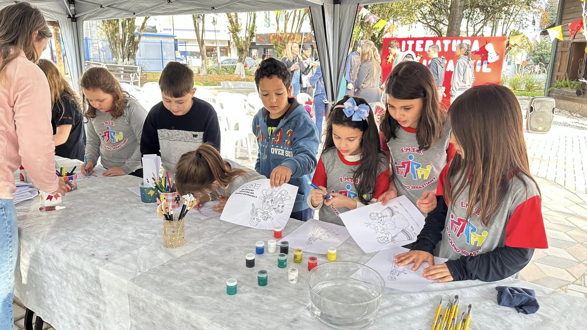Na manhã desta quinta-feira, 29, foi promovida Oficina Poética com mediação da professora e mestra em Letras, Darliana França, da Academia Centro Serra de Letras. À tarde, apresentação “Pano Criativo” com os alunos da Escolinha Caramelada; “O pintor do mundo”, com alunos do 5º e 6º anos da EEEF Lindolfo Silva e apresentação com fantoches; além de teatro “A Princesa Negra de Neve”, da EEEF Santo Carniel. Também houve a participação de jovens escritores mediados por César Brixner, da Academia Centro Serra de Letras, e convidados, com a presença também do prefeito Armando Mayerhofer.