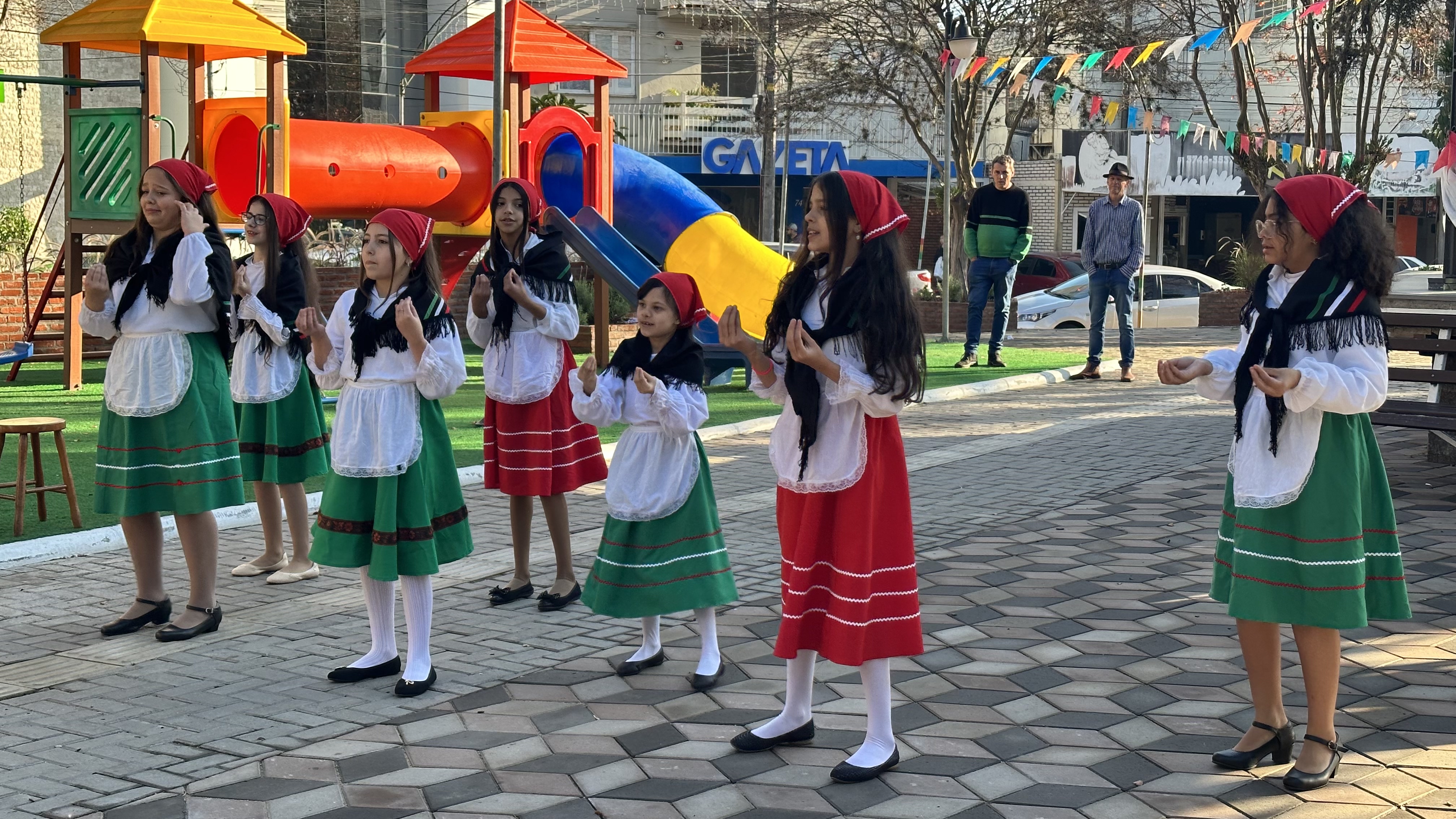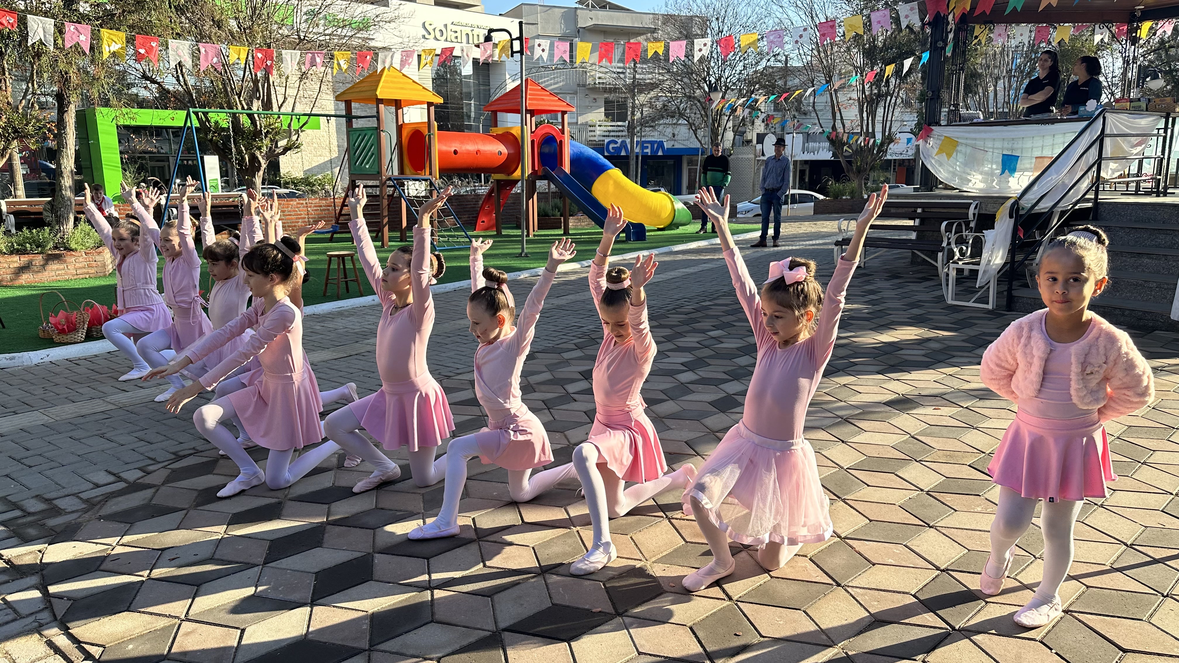 Na terça-feira, 27, ocorreu apresentação da dança “Árvores Balançam”, pelos alunos do Maternal da EMEI Dudu, do Bairro Medianeira; houve também apresentação do Grupo Etnias, da EMEB Adolpho Sebastiany, do Bairro Vera Cruz, e ainda uma apresentação da Oficina de Ballet do Projeto Arte e Cidadania.