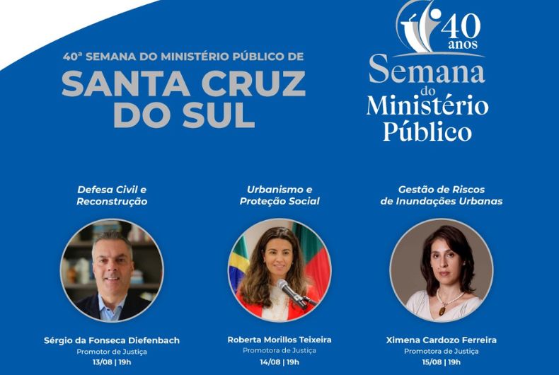 Completando quatro décadas de história, a Semana do Ministério Público de Santa Cruz do Sul será realizada de 13 a 15 de agosto de 2024, no Anfiteatro do Bloco 18 da Faculdade de Direito da Universidade de Santa Cruz do Sul (UNISC).