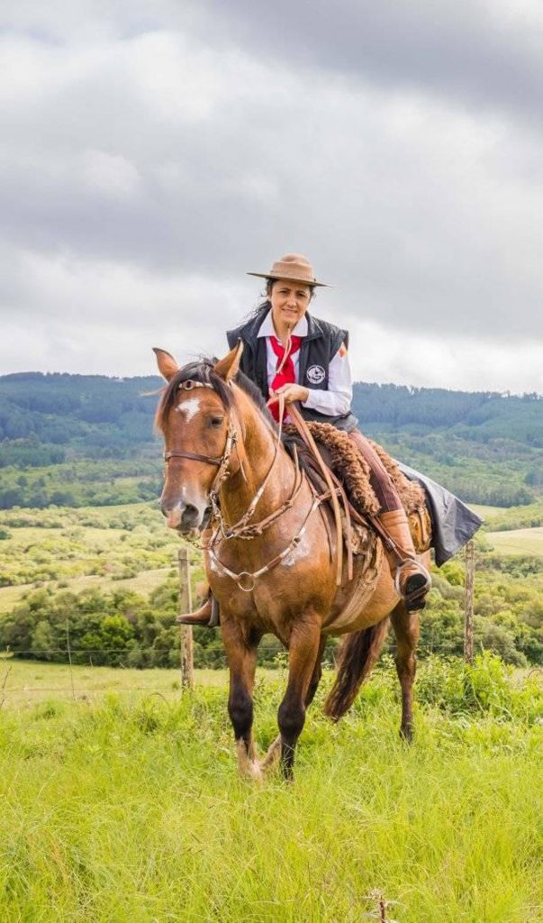 No CTG Tio Itia, ela difunde as pesquisas realizadas na comunidade escolar. “Considero imprescindível o resgate e a vivência das tradições gaúchas no meio estudantil. Também o incentivo aos departamentos culturais, artísticos e campeiros nas entidades tradicionalistas”, defende a patrona, atual coordenadora do grupo de cavalgadas Cavalaria Paladina Santa-Cruzense.