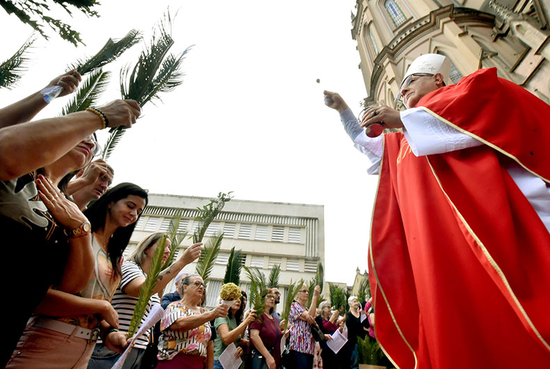 Centenas de cristãos participaram na manhã deste domingo, 13, da bênção de ramos em frente à Catedral São João Batista, seguida da Santa Missa. Segundo a Igreja Católica o Domingo de Ramos é celebrado em memória a entrada de Jesus em Jerusalém, onde foi recebido pelo povo com ramos de oliveiras e palmeiras.