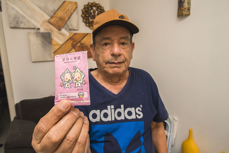 Pelo som, o pacote aparenta conter sementes, mas na verdade é um sachê perfumado