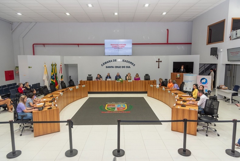 No segundo dia de atividades da Semana de Combate à Violência contra as Mulheres em Santa Cruz do Sul, nessa quarta-feira, 23, a Câmara de Vereadores foi palco do XIX Seminário pela Articulação da Rede de Atenção às Mulheres em Situação de Violência, evento realizado pelo Conselho Municipal da Mulher (CMM), em parceria com a Prefeitura. Na pauta foram tratados temas como o enfrentamento da violência doméstica e familiar, a Lei Maria da Penha e as mulheres trans.