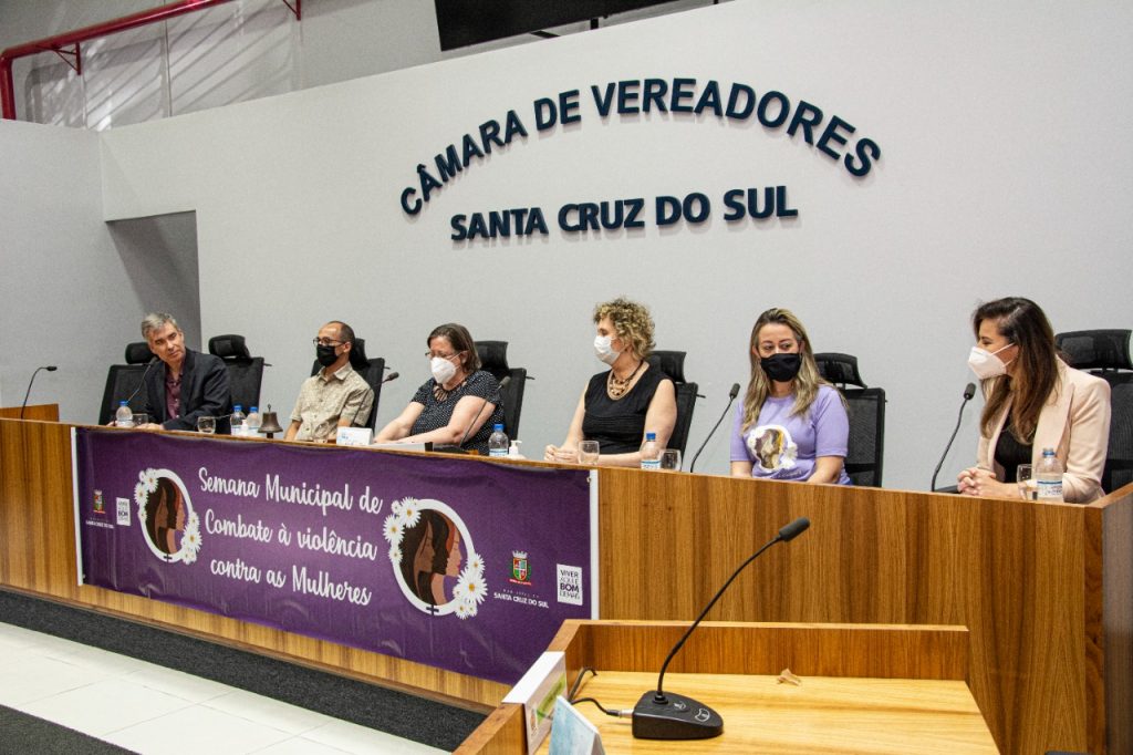 Ao abrir os trabalhos, a presidente do Conselho Municipal dos Direitos da Mulher, Iara Bonfanti, fez um breve relato do histórico da luta das mulheres em Santa Cruz do Sul por mais representatividade. Ela lembrou do período de criação do conselho, das dificuldades enfrentadas por diferentes visões dos gestores públicos e da constituição da rede de atendimento, que hoje pode ser considerada uma das mais bem estruturadas do Estado. Defendeu, ainda, a ampliação da Casa Abrigo, para que a estrutura se torne regional e possa acolher mulheres de outros municípios, e a criação de uma Coordenadoria da Mulher, viabilizando ao município acessar verbas para programas em prol das vítimas de violência.