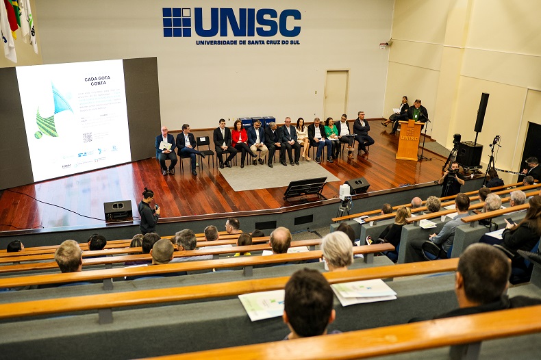 A Universidade de Santa Cruz do Sul (Unisc) sediou na sexta-feira, 27, mais uma edição do projeto Encontros do RS Sustentável – Cada Gota Conta: Reservação de água, irrigação e piscicultura. Proposto pela Assembleia Legislativa (AL/RS), o evento foi realizado no anfiteatro do bloco 18 da instituição. Reuniu líderes políticos e especialistas que trataram sobre os recursos hídricos e a importância de preservá-los para garantir o desenvolvimento sustentável do Estado frente às dificuldades climáticas cada vez mais recorrentes.