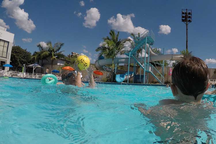 Quinta-feira: mínima de 21 graus, máxima de 34 graus, sol entre nuvens
