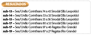 O Sesi/União Corinthians venceu cinco jogos em seis disputados pelo Campeonato Gaúcho de basquete das categorias de base, no último fim de semana. Foi a abertura da competição.