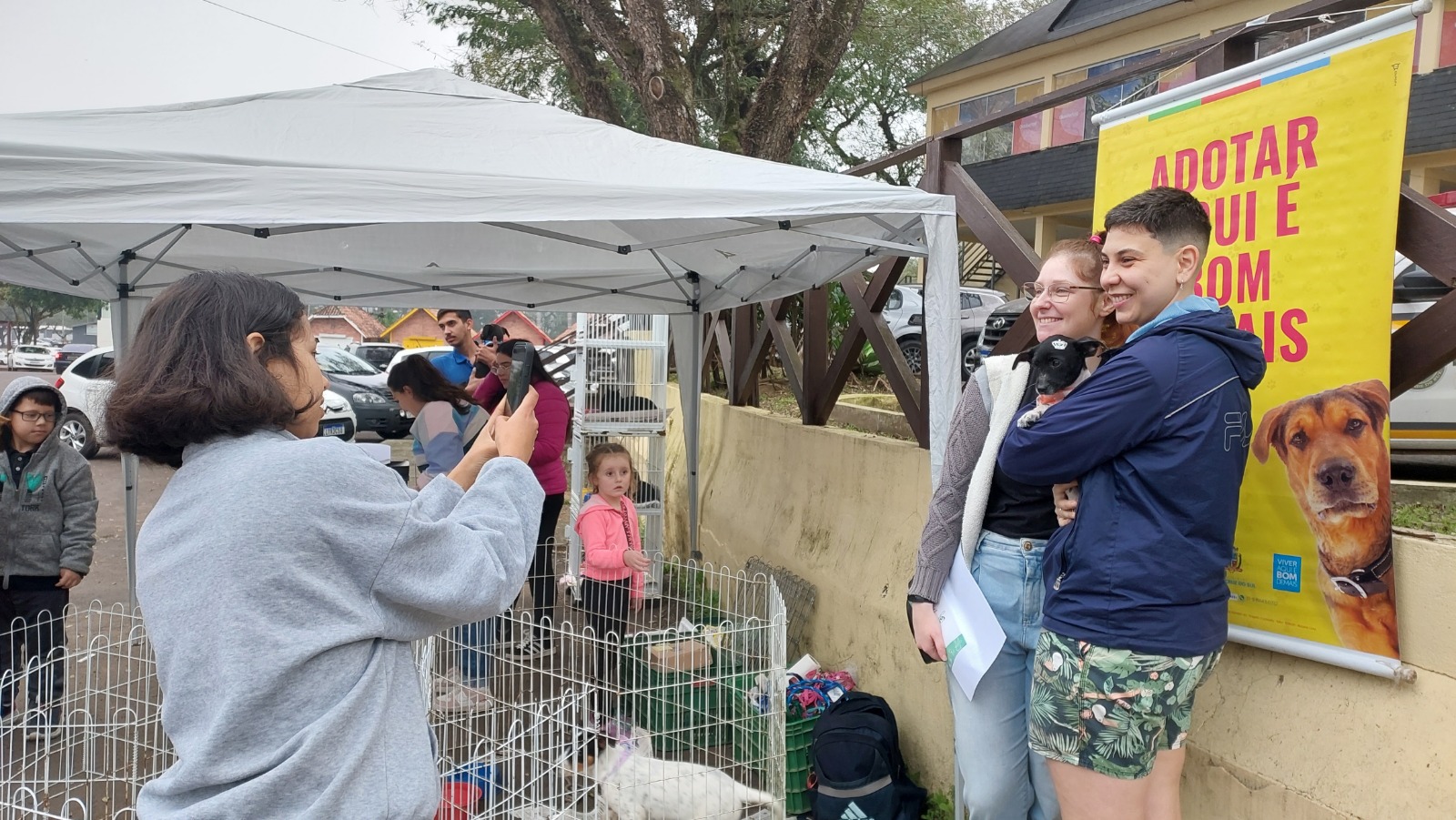 Quem aproveitou para adotar um bichinho foi o casal Vitória e Victor Gabriel da Silva. Eles vieram do município vizinho de Vera Cruz para prestigiar a feira. “Ainda não batizamos com o nome, mas gostamos desta cadelinha e vamos levar, somos apaixonados por animais”, disse Victor.
