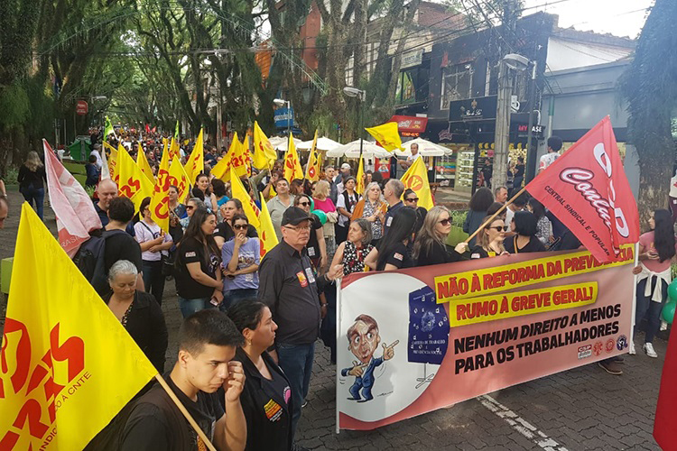 Um ato, organizado pelo Comitê Contra o Fim da Previdência Pública do Vale do Rio Pardo, também é realizado na Praça Getúlio Vargas, desde as 8 horas com uso de carro de som e manifestantes com bandeiras. Às 9 horas haverá falas de líderes sindicais e uma caminhada pelo Centro. De acordo com a diretora do núcleo do Cpers, Cira Kaufmann, o ato é para informar a população. “Estamos em caminhada pelas ruas de Santa Cruz, fazendo várias falas no sentido de conscientizar dos problemas que esta reforma da previdência traz para o povo brasileiro trabalhador.”