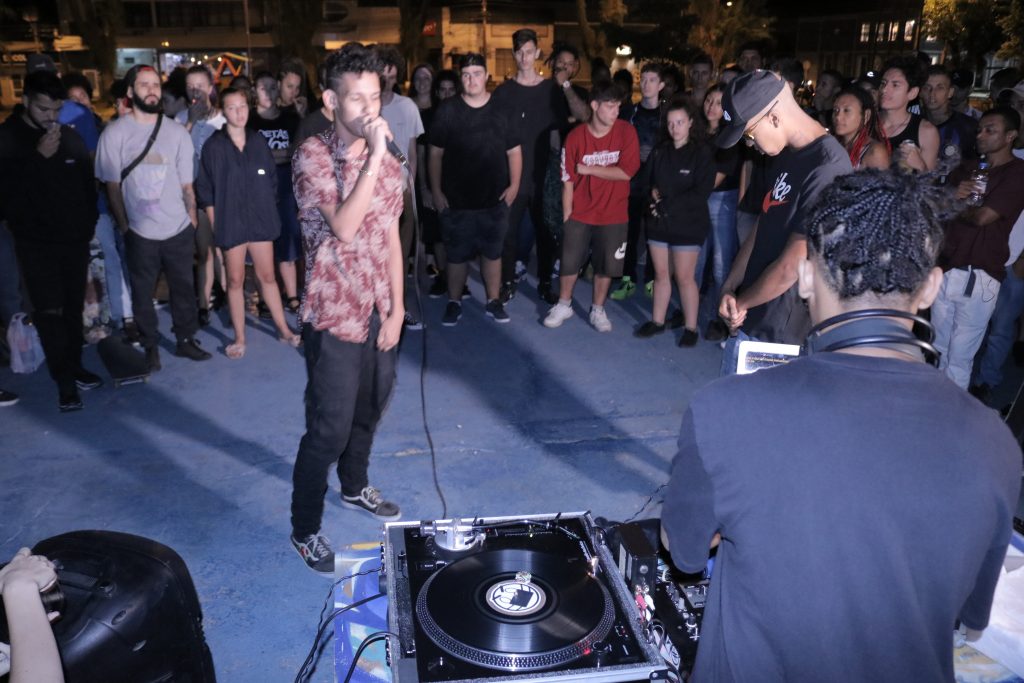 Ao cair da noite, eles chegam de todos os lados. Atraídos pelo som do rap, dezenas de jovens se agrupam no chamado “palquinho azul”, o coração da Praça Siegfried Heuser, para trocar ideias, dançar, cantar, se divertir e, acima de tudo, se expressar. E é assim todas as noites de segunda-feira.