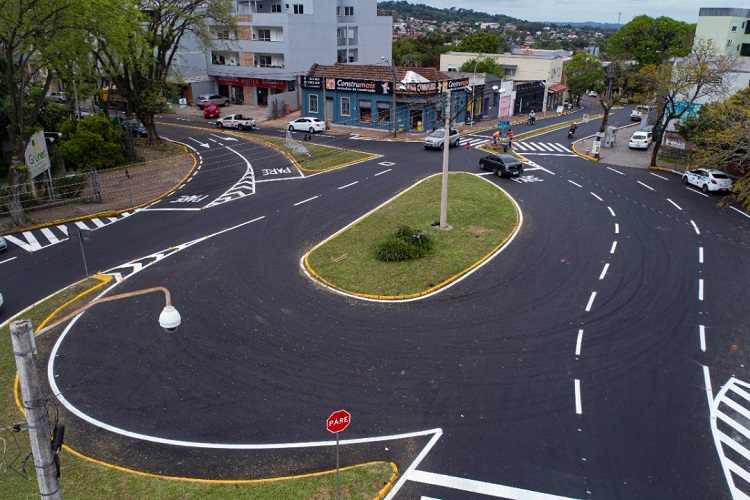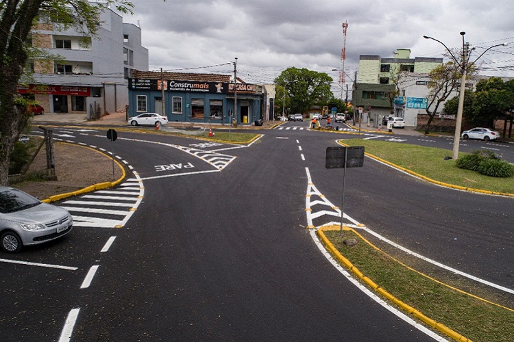 Após a conclusão da pavimentação no Trevo da Souza Cruz, a Secretaria de Transportes, Serviços e Mobilidade Urbana de Santa Cruz do Sul realizou, na noite dessa terça-feira, 20, a pintura da sinalização da via.