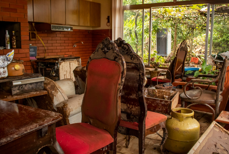 O olhar incrédulo de Hildegard Schmidt, aos 69 anos, mostra a surpresa e a frustração ao mirar a casa onde trabalha. Ela e a proprietária, sua xará Hildegard Becker, de 82 anos, mantêm o casarão antigo que foi construído para ser o hospital de Sinimbu, com jardins, plantações, móveis centenários e muitas relíquias. Tudo destruído pela água e pela lama. A dona estava sozinha em casa quando a água subiu e acabou se salvando porque conseguiu ir para o sótão da morada. Depois, foi resgatada pelas forças de segurança.