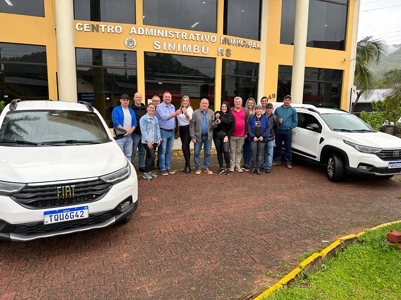 A Administração Municipal de Sinimbu realizou nessa segunda-feira, 6, a entrega de dois veículos zero quilômetro que passam a integrar a frota do Município. As duas Fiat Strada foram destinadas às Secretarias de Agricultura, Indústria, Comércio e Meio Ambiente e de Educação, Cultura e Turismo, com o objetivo de reforçar o trabalho das equipes e melhorar o atendimento à comunidade.