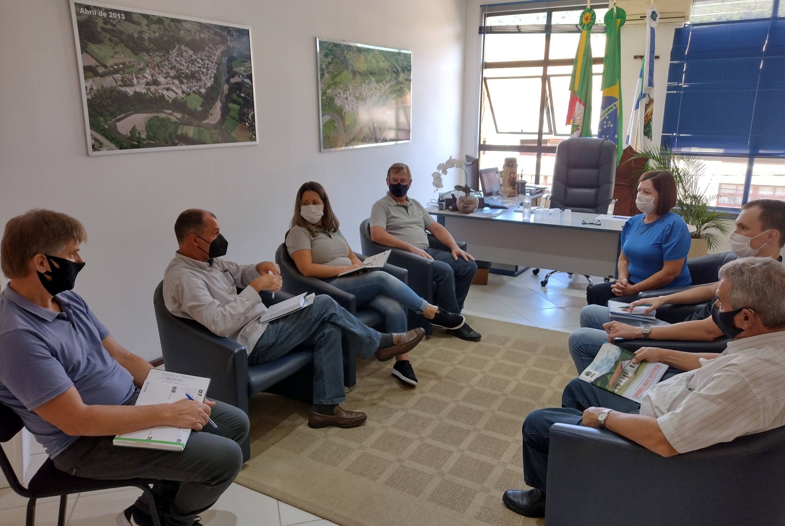 A prefeita de Sinimbu, Sandra Backes, esteve reunida, na tarde desta, segunda-feira, 7, com o presidente do Sindicato Rural de Santa Cruz do Sul, Marco Antônio dos Santos, e o supervisor regional do Senar/RS, Ricardo Lopes de Almeida. Na oportunidade, propuseram a renovação da parceria entre as entidades e o município de Sinimbu, além de apresentarem novos programas e atividades desenvolvidas pela entidade.
