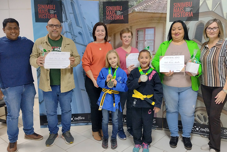 Professor e atletas sinimbuenses foram homenageados pela conquista das medalhas