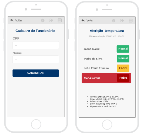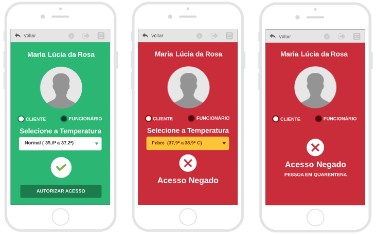 O mesmo sistema, para estabelecimentos, permitirá às empresas registrar a entrada e saída dos funcionários, respeitando a obrigatoriedade de verificar a temperatura de cada empregado e informando este dado no próprio aplicativo. O acesso do funcionário será permitido caso ele não apresente febre, mas será negado se a temperatura atingir o patamar indicado no sistema durante o cadastro. A plataforma ainda emite alertas às empresas que receberam pessoas infectadas, para pessoas impedidas de acessar o estabelecimento e do acesso autorizado ou negado para cada cliente.