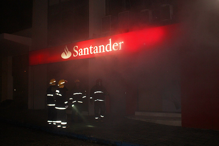 O sistema de segurança contra incêndios da agência do Banco Santander na Rua Ramiro Barcelos, no Centro de Santa Cruz do Sul, foi ativado na noite desta sexta-feira, 20, quando dois clientes tentaram ingressar na sala dos terminais de autoatendimento.