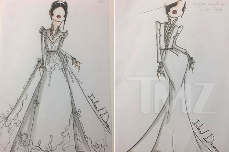 Com a perspectiva de mais um casamento real no horizonte com a união do Príncipe Harry com a atriz americana Meghan Markle, os fãs buscam qualquer informação sobre a futura união. O site de celebridade TMZ divulgou possíveis esboços para o vestido da noiva.