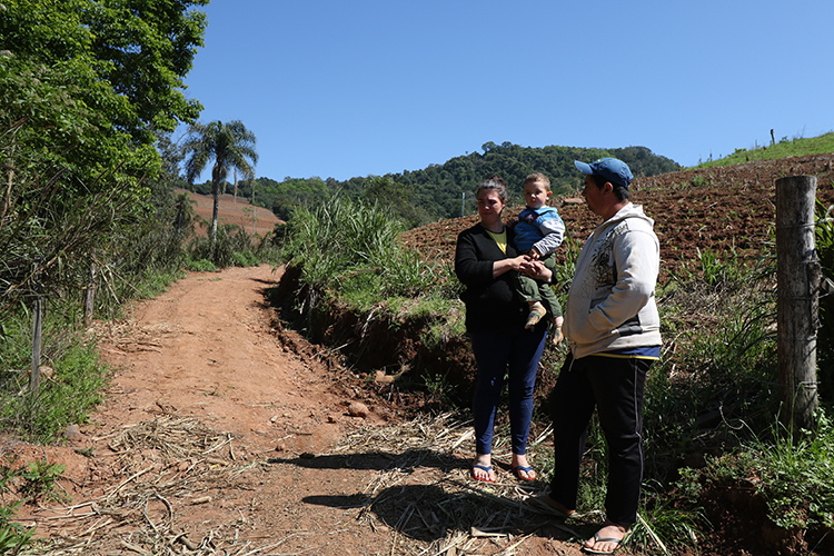 A propriedade do agricultor em Linha 15 de Novembro II tem quatro hectares onde são cultivados aipim, batata, milho e verduras. A construção da moradia perto da lavoura facilitaria o trabalho do casal e também os cuidados com o filho, que tem problemas de saúde como convulsões. Em julho, foram entregues os primeiros materiais, como areia, brita e madeira. Mas de acordo com Soares, a precariedade do acesso à propriedade compromete que o restante seja trazido.