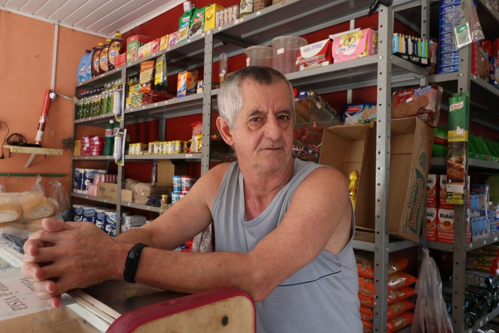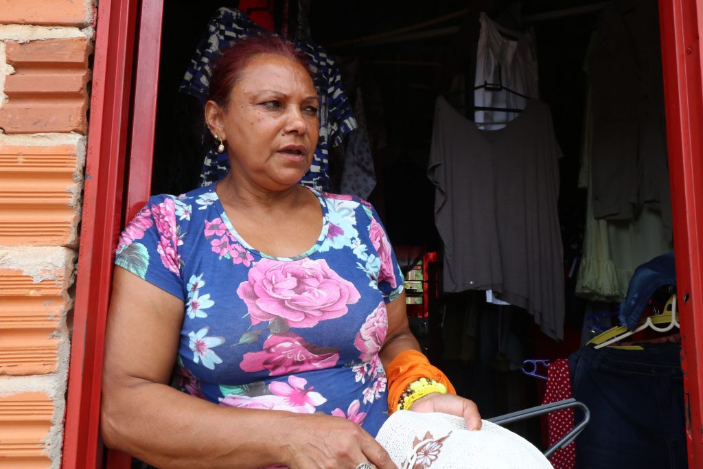 A proprietária de um brechó na Rua General Osório, Vera Lúcia Souza Pereira, vive nas proximidades do rio há 40 anos. Chegou a morar praticamente na barranca do Rio Pardo, mas precisou se mudar ao perder a casa de madeira em uma das enchentes. Agora, em uma pequena loja construída com tijolo e cimento, Vera observa a queda no nível do rio que tantas vezes esteve acima do normal. “Dá para ver as pedras. Dias atrás, era só um filete de água. Choveu na terça-feira, antes da virada de ano. Mas foi pouco”, afirma.