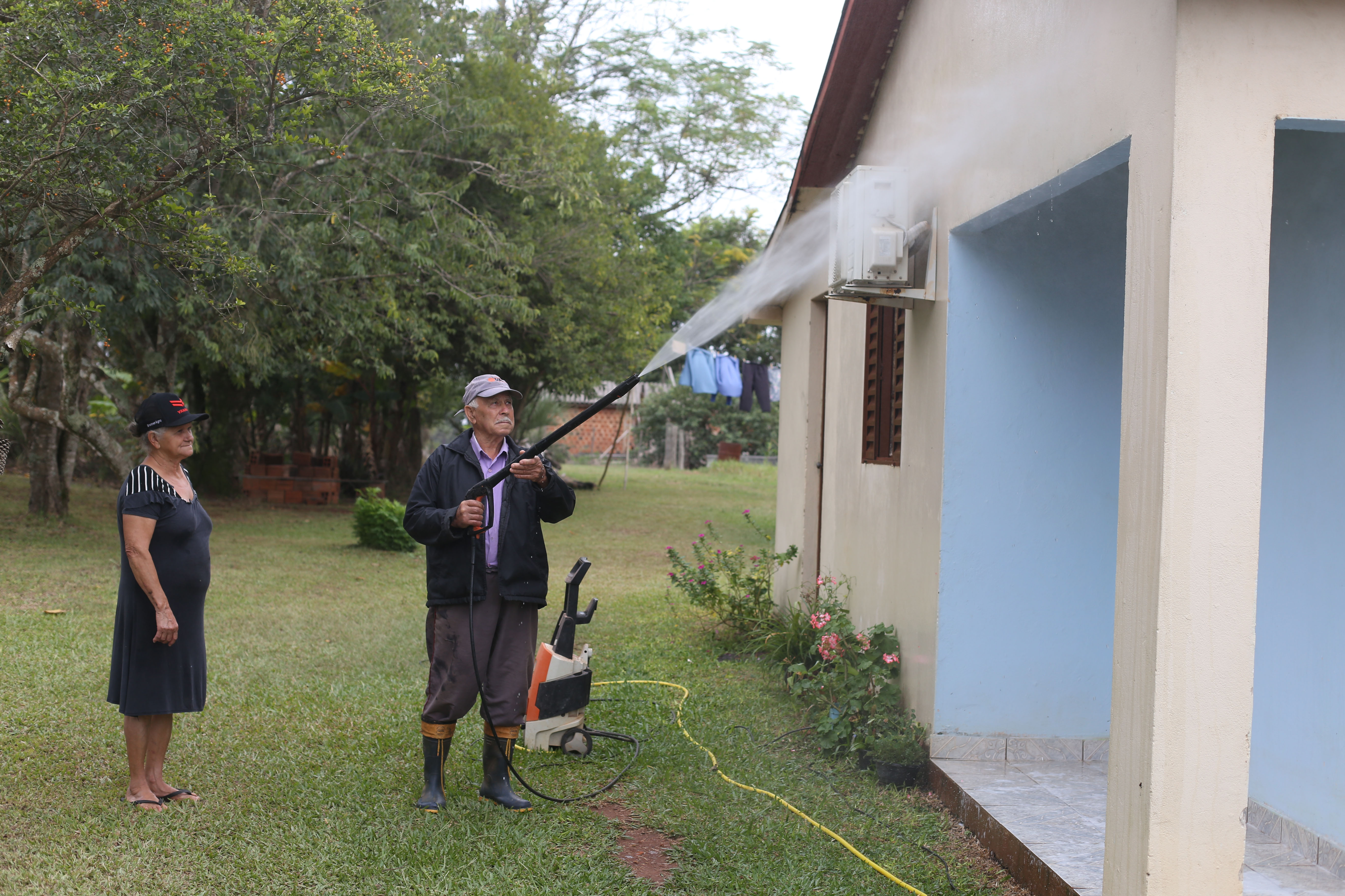 Bastou andar alguns quilômetros para encontrar o casal Olipardo Gomes e Maria Aida de Freitas, moradores da localidade de Três Vendas, no 7º distrito de Rio Pardo, limpando as paredes externas da casa com uma lavadora de alta pressão, por causa da poeira da estrada. “A base do pré-asfalto é o pavor aqui de casa. Há dias em que sobe uma nuvem de poeira por conta dos caminhões que passam correndo por aqui. E não adianta fechar as janelas, não tem nada que impeça a poeira de entrar na casa”, relatou Olipardo.