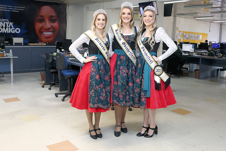 O novo trio de soberanas da Oktoberfest de Santa Cruz do Sul não teve muito tempo para descansar após ser coroado na noite do último domingo, no Ginásio Poliesportivo Arnão. Na tarde dessa segunda-feira, 29, a rainha Camila Eduarda Schaefer e as princesas Marilia Fischer e Daniela Schoeninger tiveram os primeiros compromissos. Entre eles, a visita à Gazeta Grupo de Comunicações.