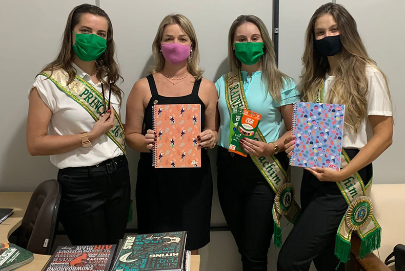 A compra dos itens foi feita com recursos arrecadados pelas soberanas junto a amigos e empresários locais. Cadernos, lápis, borrachas e apontadores estão entre os pedidos da campanha, que se estende até o dia 1º de março. Podem ser doados produtos novos ou usados em bom estado.