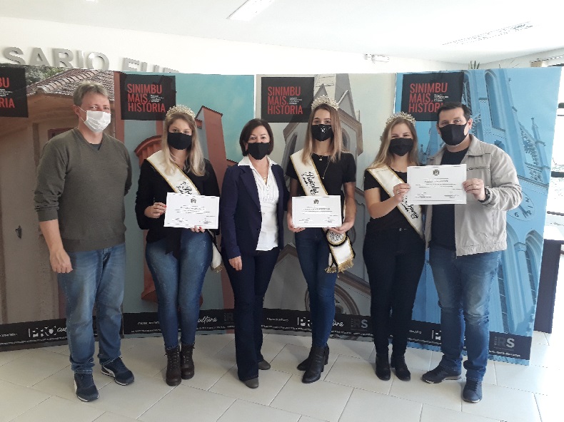 Sendo assim, Yasmim, Geovana e Tchúlia receberam das mãos da prefeita Sandra Backes, vice-prefeito Jackson Rabuske, e do secretário de Educação, Cultura e Turismo Rafael Schultz, um certificado oficializando a prorrogação do reinado. “Desejamos a vocês, muita sabedoria e espontaneidade para continuar representando Sinimbu em seus eventos e programações”, frisou a prefeita.