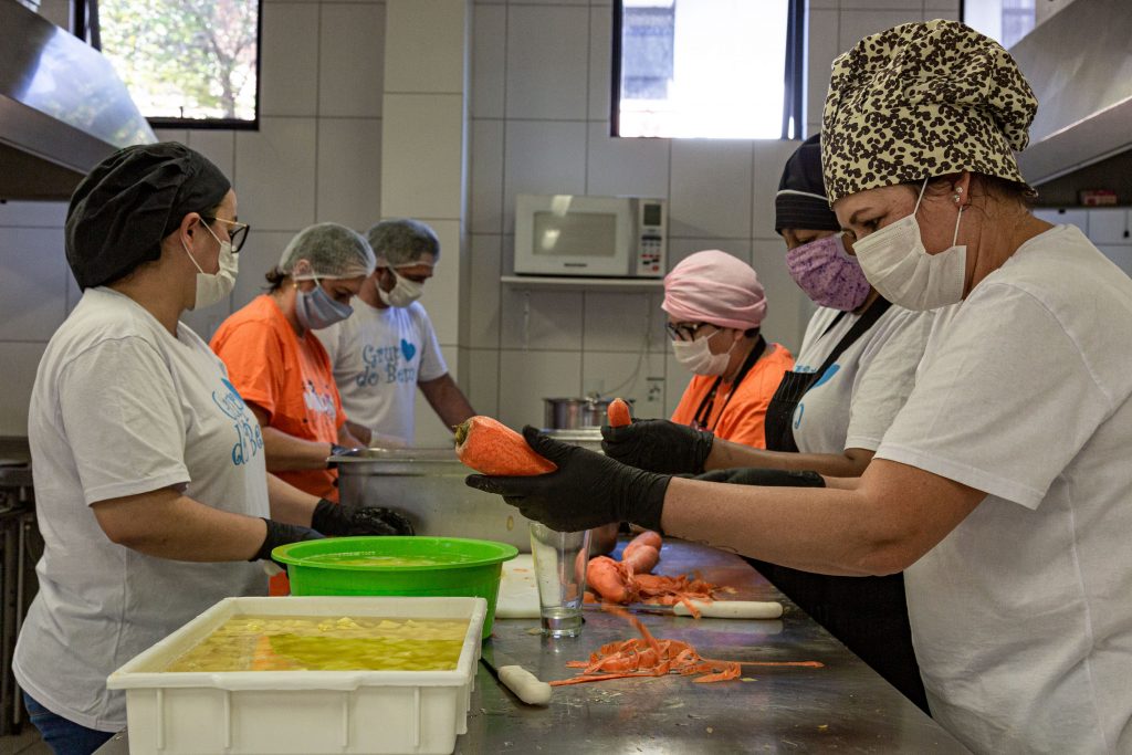 O preparo dos alimentos ocorreu sob a coordenação da funcionária do Centro Gastronômico da Unisc, Luciana Cassaboni, que organizou as atividades dos voluntários da Universidade e do Grupo do Bem. A sopa é uma alimentação com nutrientes necessários para uma refeição principal (almoço ou jantar) e pode fazer parte do cardápio semanal. “Pelo conteúdo de água, hidrata e fornece parte das calorias diárias que o organismo precisa. Pela presença de hortaliças, é fonte de minerais, vitaminas e fibras, contém alimentos fontes de carboidratos, lipídeos e proteínas, fornecendo energia para o dia a dia, e desempenhando funções construtoras, reparadoras e que auxiliam na imunidade, uma vez que é feita com alimentos in natura, sem o uso de qualquer tipo de alimento ultra processado”, disse a coordenadora do curso de Nutrição, professora Fabiana Assmann Poll.