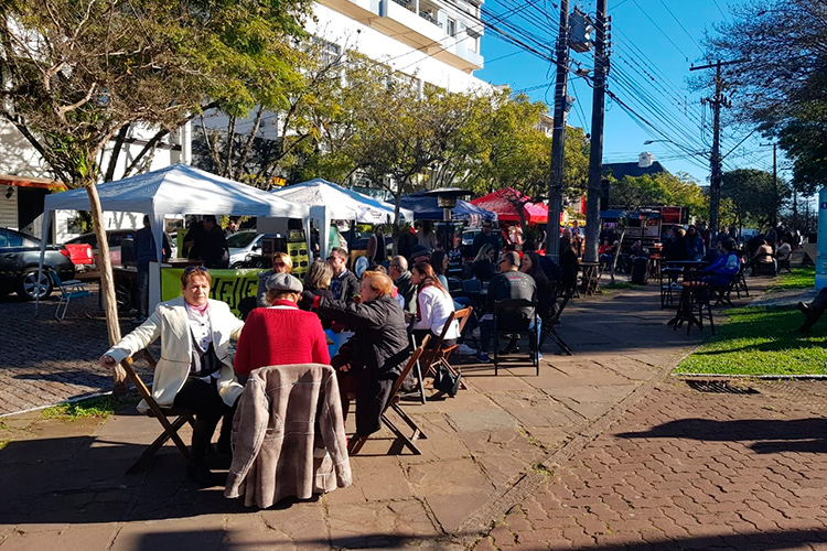 Ainda faltam três meses para começar a Oktoberfest de Santa Cruz do Sul, mas o clima da Festa da Alegria tomou conta da Rua Borges de Medeiros na tarde deste domingo, 7, quando foi realizado o 1º Stammtisch. O evento movimentou a Praça da Bandeira, que recebeu famílias e grupos de amigos para confraternizar e apreciar cervejas artesanais feitas no município. Ao som de bandinhas alemãs, a programação contou com food trucks e cervejarias. Também teve apresentação de DJs e telão para assistir à final da Copa América.